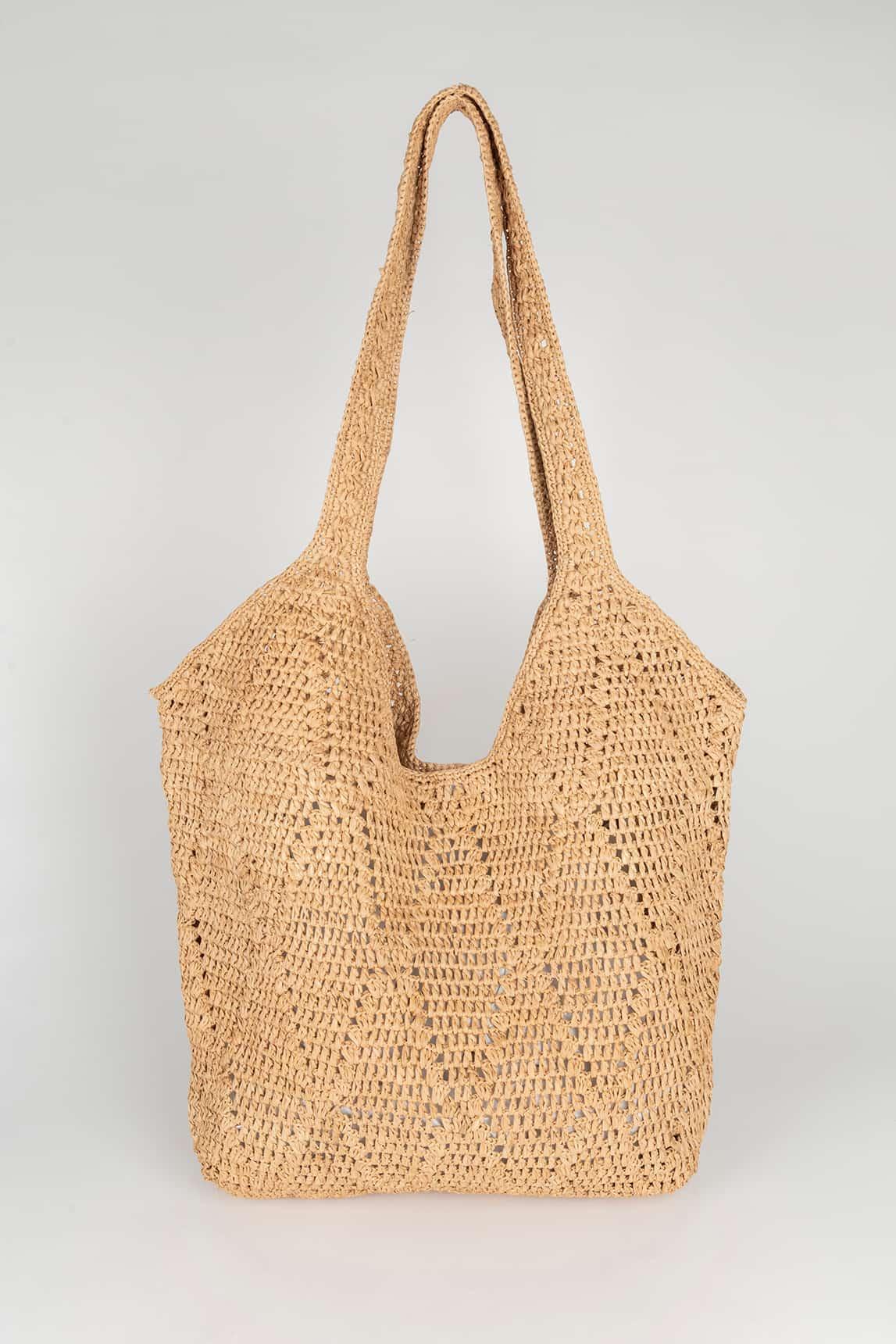 Measuring 70×42×10 cm with a handle of 38 × 25.5 cm, it offers enough space to accompany you on long days: wallet, toiletry bag, sunglasses, and other essentials. It is an ideal option as a summer shopper bag, a spacious raffia bag, or a natural accessory for casual outfits.