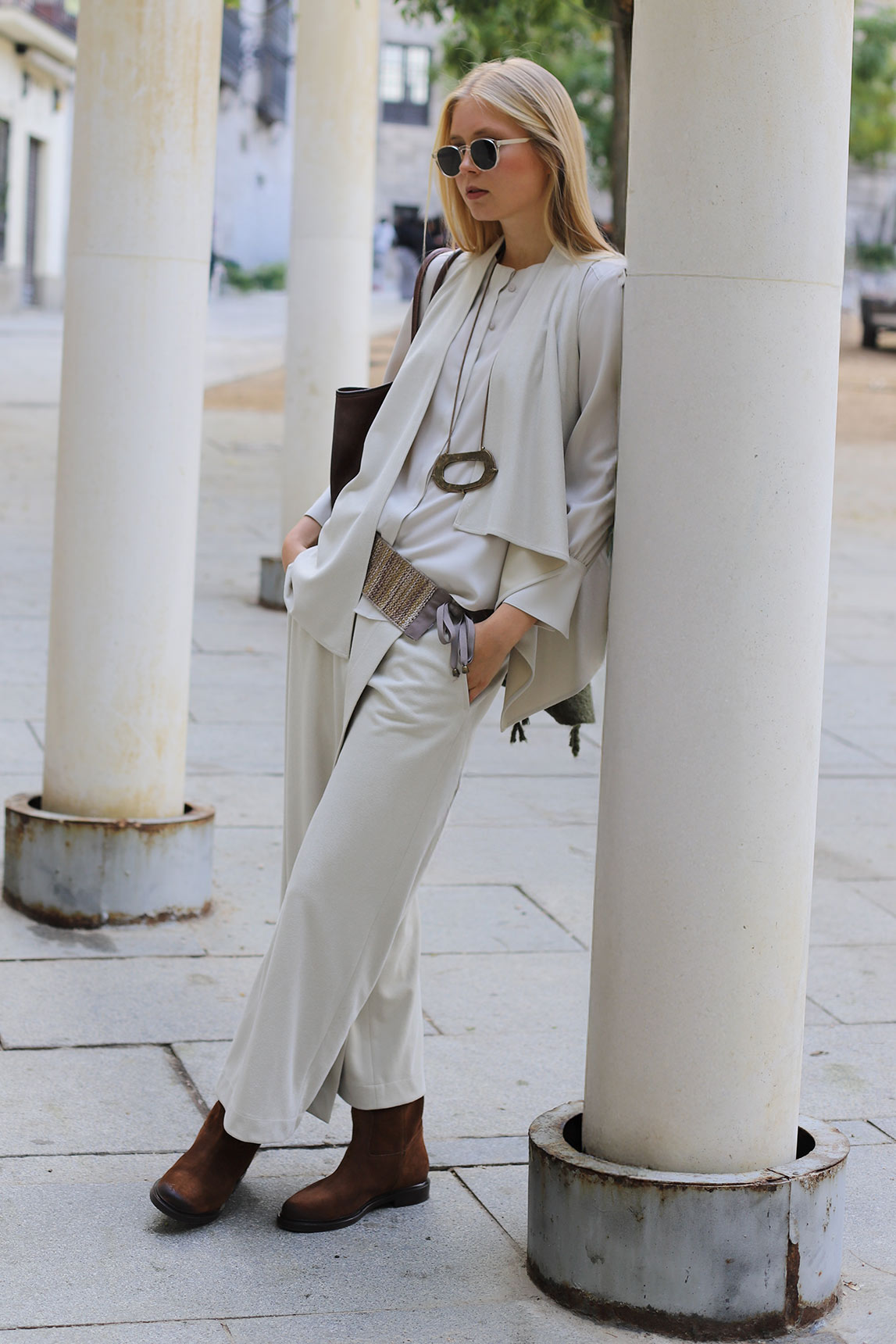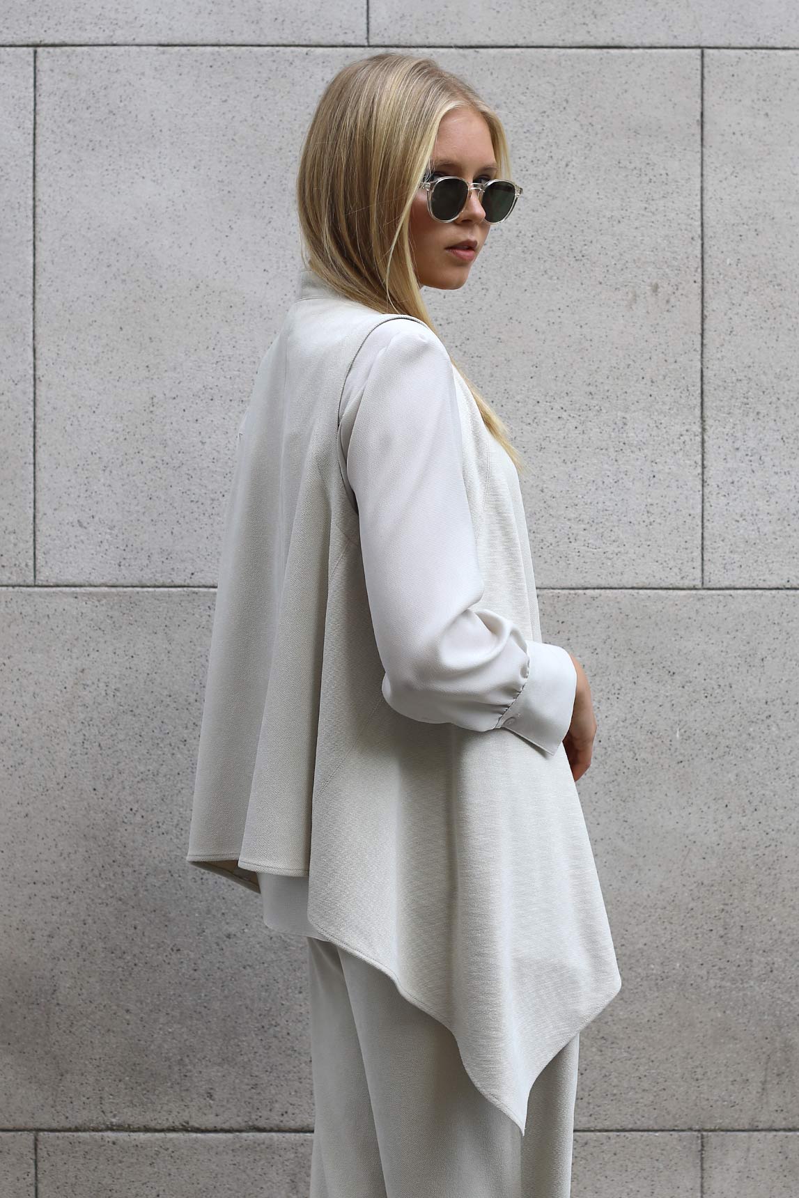 El chaleco Varenna en color crudo ilumina cualquier look y suma sofisticación sin esfuerzo. Su silueta abierta y la fluidez del tejido lo convierten en una prenda versátil para crear capas elegantes tanto de día como de noche.