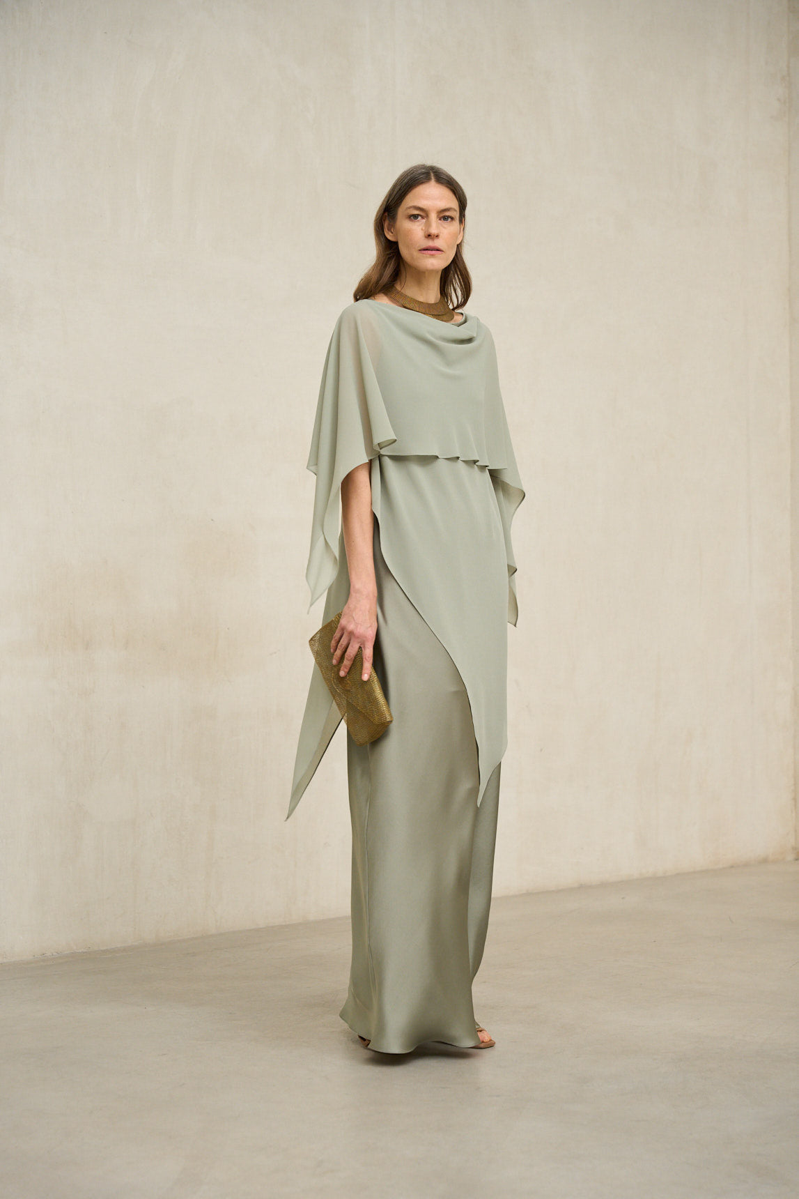 - Handmade clutch made of gold metallic mesh.