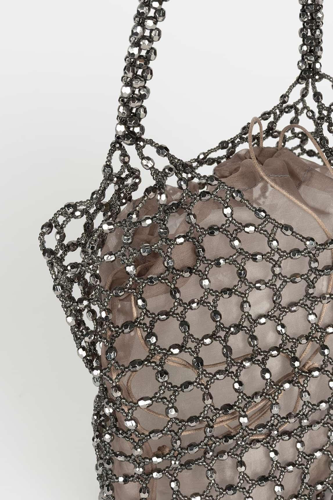 The metallic Lysenne bag is a jewel-like handbag designed to elevate evening looks, special events, and celebrations. Its metallic mesh structure with microcrystals creates a shimmering and sophisticated effect, making this party bag the absolute centerpiece of any outfit.