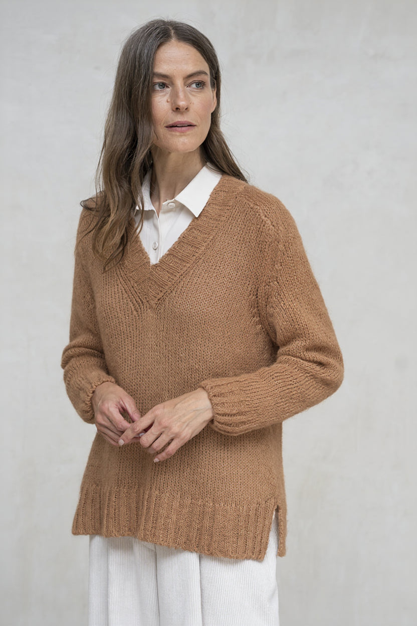 El jersey Specco camel es una prenda versátil y elegante, ideal para aportar calidez a tus looks de otoño e invierno. Su diseño con cuello pico realza el escote y permite superponer camisas o blusas, ofreciendo un aire más sofisticado. Confeccionado en un tejido de tacto suave y confortable, es perfecto para acompañarte tanto en tu día a día como en momentos de ocio. El tono camel, sobrio y atemporal, facilita la combinación con diferentes gamas cromáticas, convirtiéndose en un imprescindible de tu armario.