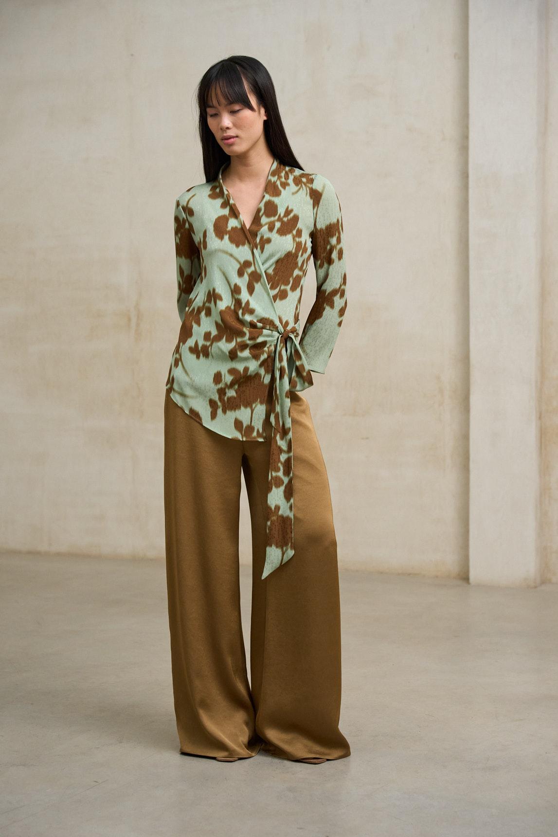 La Blusa Lioris estampado es una prenda fluida de inspiración natural que combina un diseño relajado con un estampado orgánico en tonos verde salvia, crudo y matices tierra. Su patrón artístico aporta personalidad sin resultar excesivo, manteniendo un equilibrio elegante y atemporal. Presenta escote en pico y manga corta ligeramente amplia, con una caída suave que acompaña el movimiento y estiliza la silueta sin ceñir. El tejido ligero refuerza su carácter fresco, ideal para primavera y verano. Puede llevarse con pantalones neutros para un look más depurado o combinarse con la falda a juego para crear un conjunto coordinado con efecto vestido, perfecto para celebraciones de día, reuniones informales o estilismos cuidados con aire natural. Una blusa versátil que aporta textura visual y coherencia cromática al armario estacional. Nos esforzamos por mostrar los colores de la forma más fiel posible, pero pueden variar ligeramente respecto a la realidad.