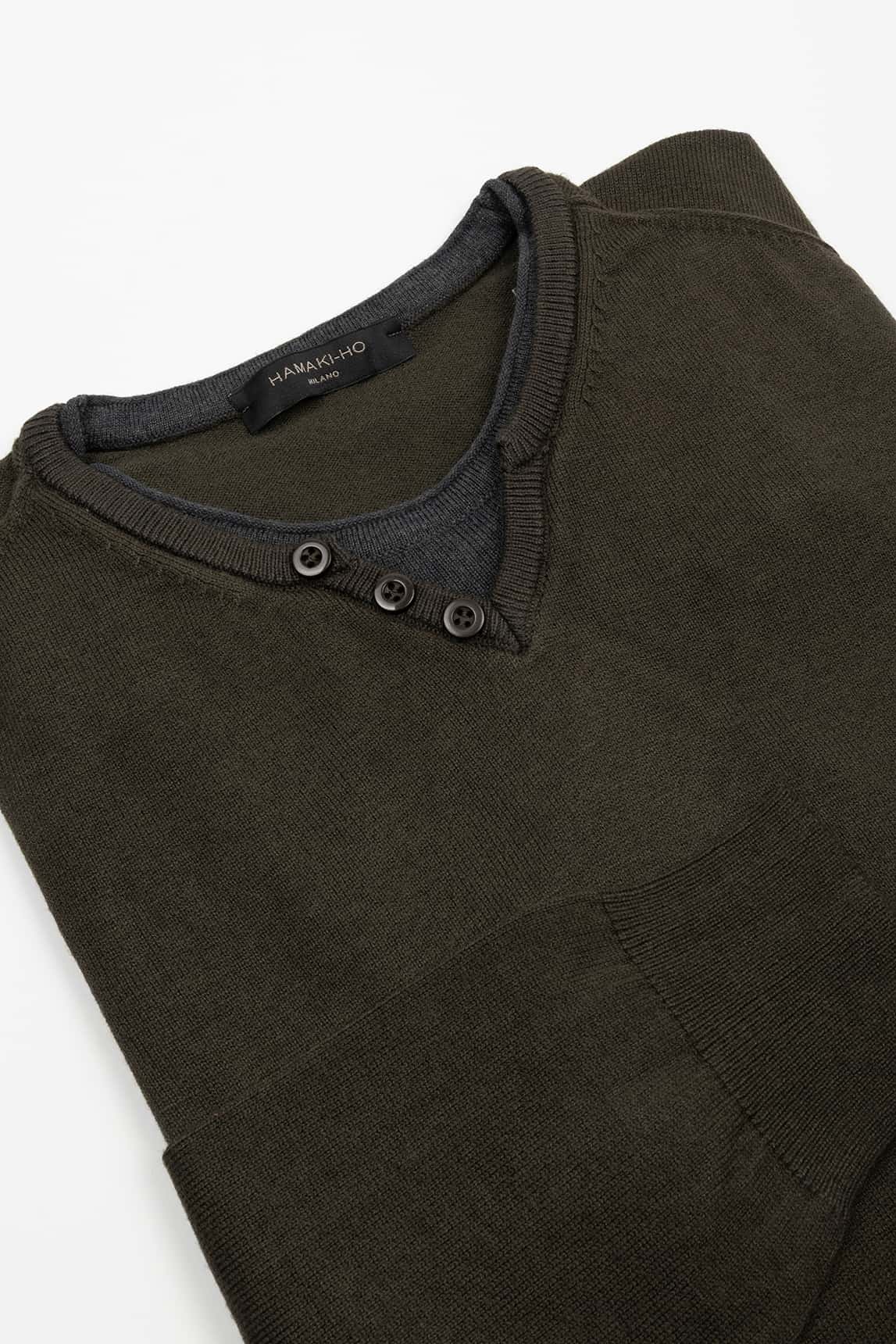 - Punto fino suave con efecto 2-en-1: falso interior en algodón gris antracita que asoma en el escote.