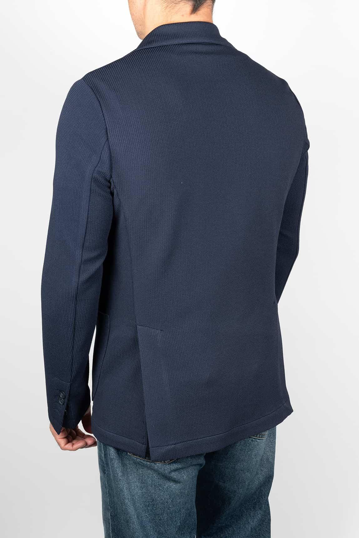 Americana de hombre Boreal con silueta entallada y construcción ligera, realizada en tono azul marino con una superficie de textura sutil que enriquece visualmente el conjunto. Presenta solapa clásica, cierre frontal de dos botones, bolsillo superior de vivo y bolsillos de parche delanteros, creando una imagen limpia y actual con un equilibrio natural entre formalidad y comodidad. La estructura se percibe flexible y favorecedora, con una caída que mantiene el conjunto ordenado sin resultar rígido.