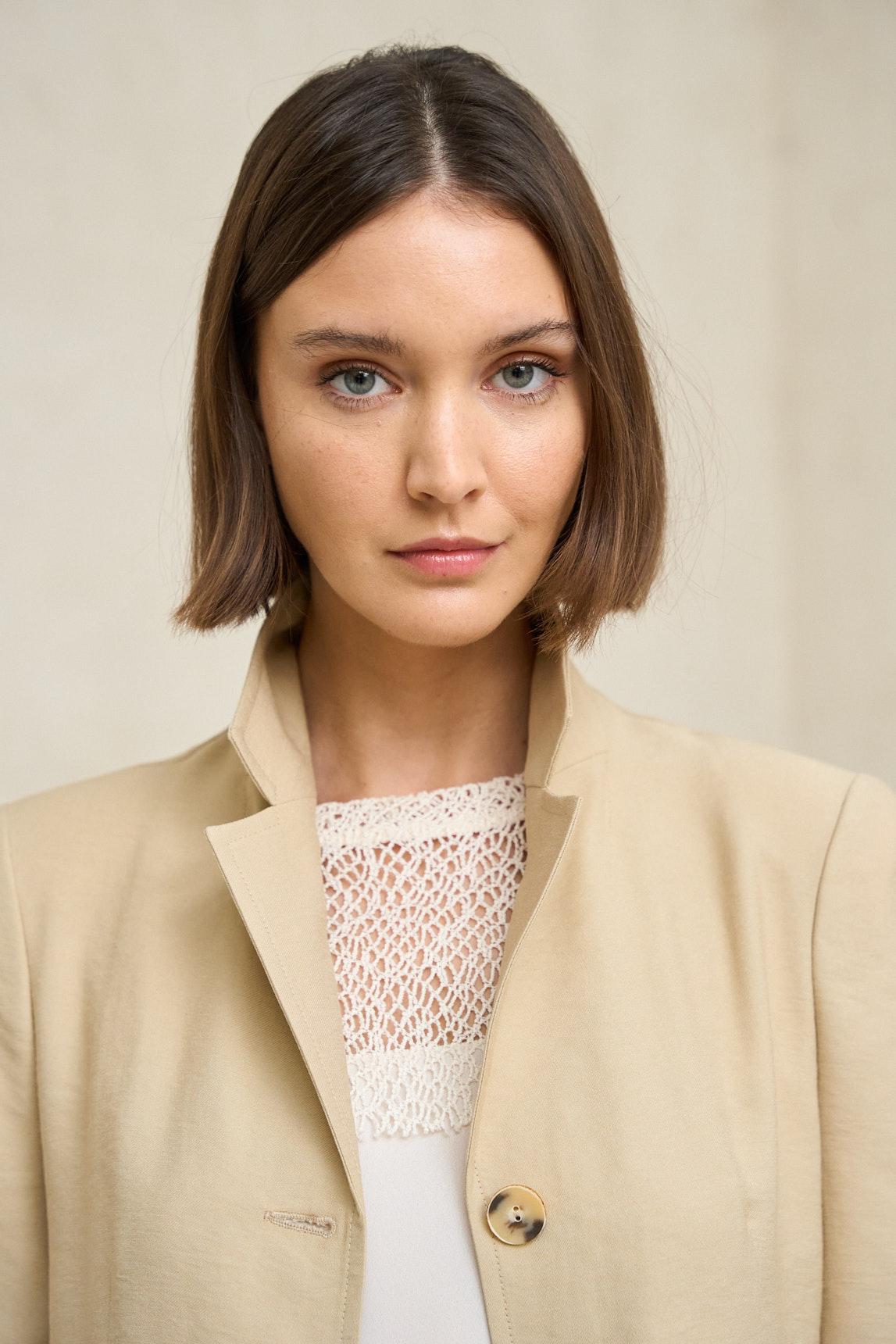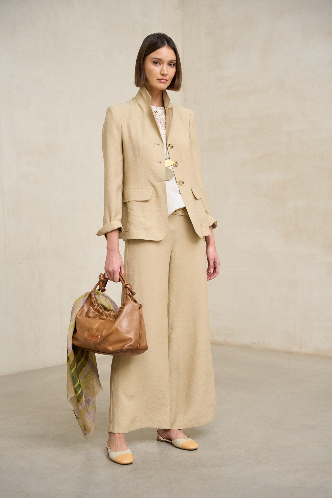 La Chaqueta Elira beige arena mantiene la estética depurada del modelo, reinterpretada en un tono cálido y versátil. Puede llevarse como prenda principal o como sobrecamisa ligera, combinada con pantalones fluidos, lino o conjuntos coordinados en la misma gama cromática. Su color beige arena aporta profundidad y naturalidad, integrándose fácilmente en looks neutros de primavera y verano.
