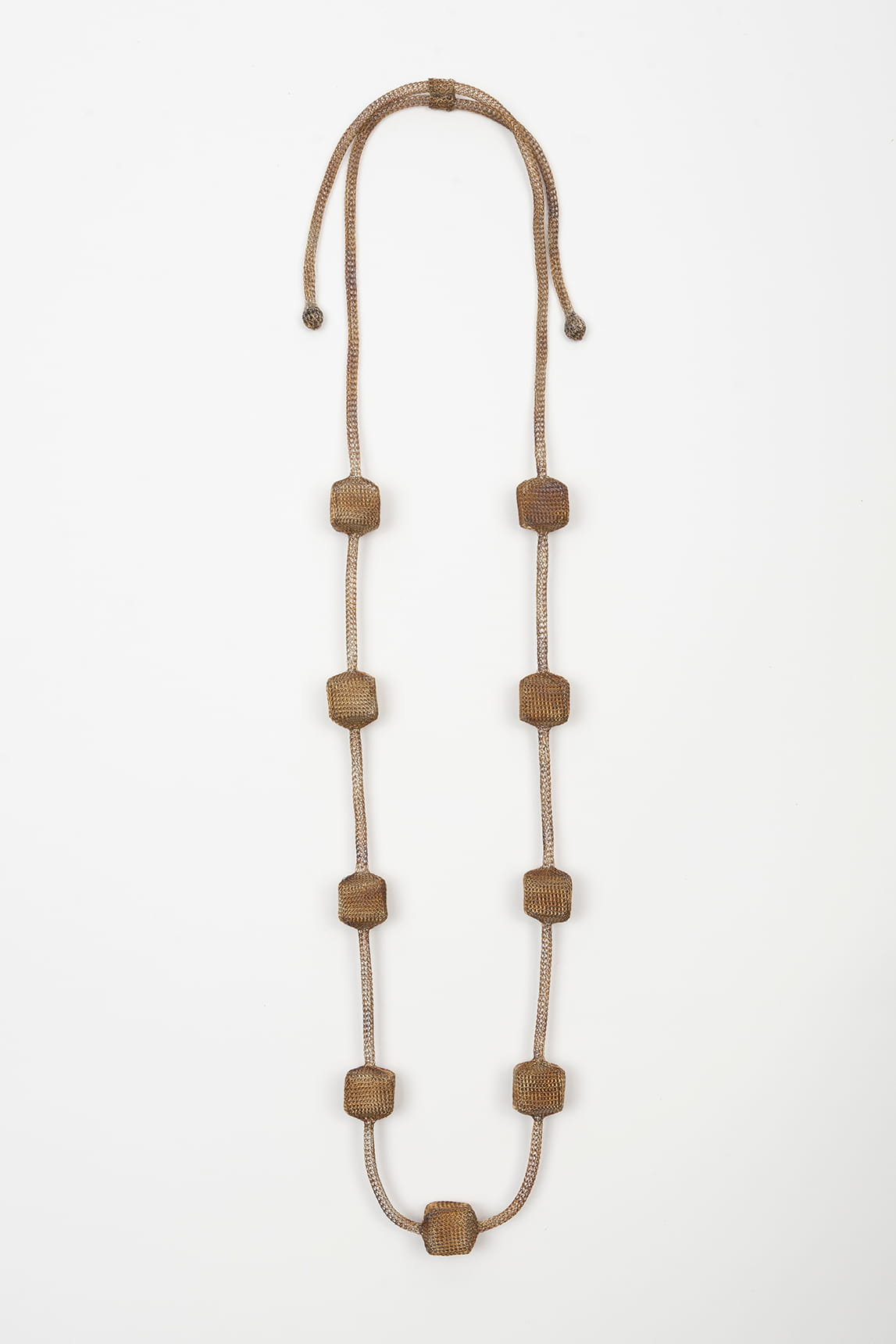 El collar Candy de Rivera combina diseño contemporáneo y acabado artesanal. Su estructura de malla dorada con cuentas recubiertas ofrece un brillo sutil y sofisticado, ideal para realzar cualquier conjunto con un toque moderno y distinguido. Perfecto para quienes buscan un accesorio versátil y con personalidad.