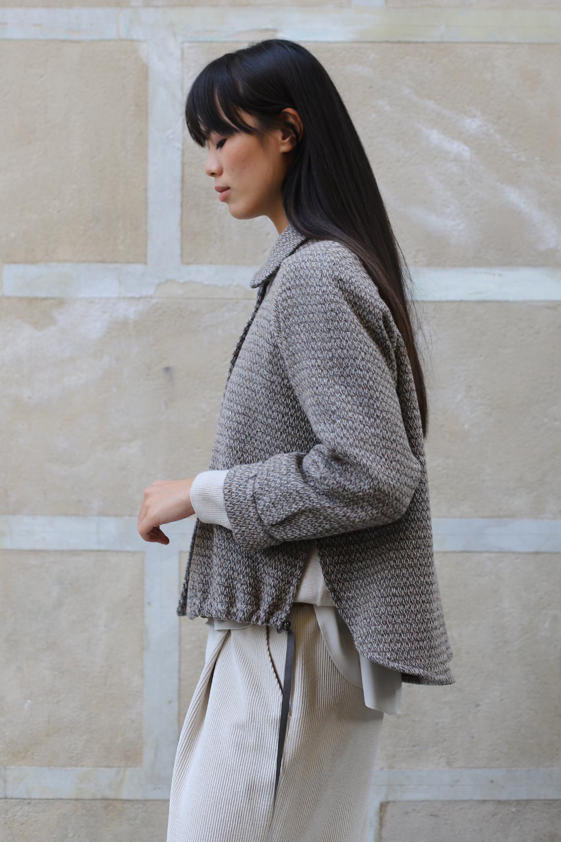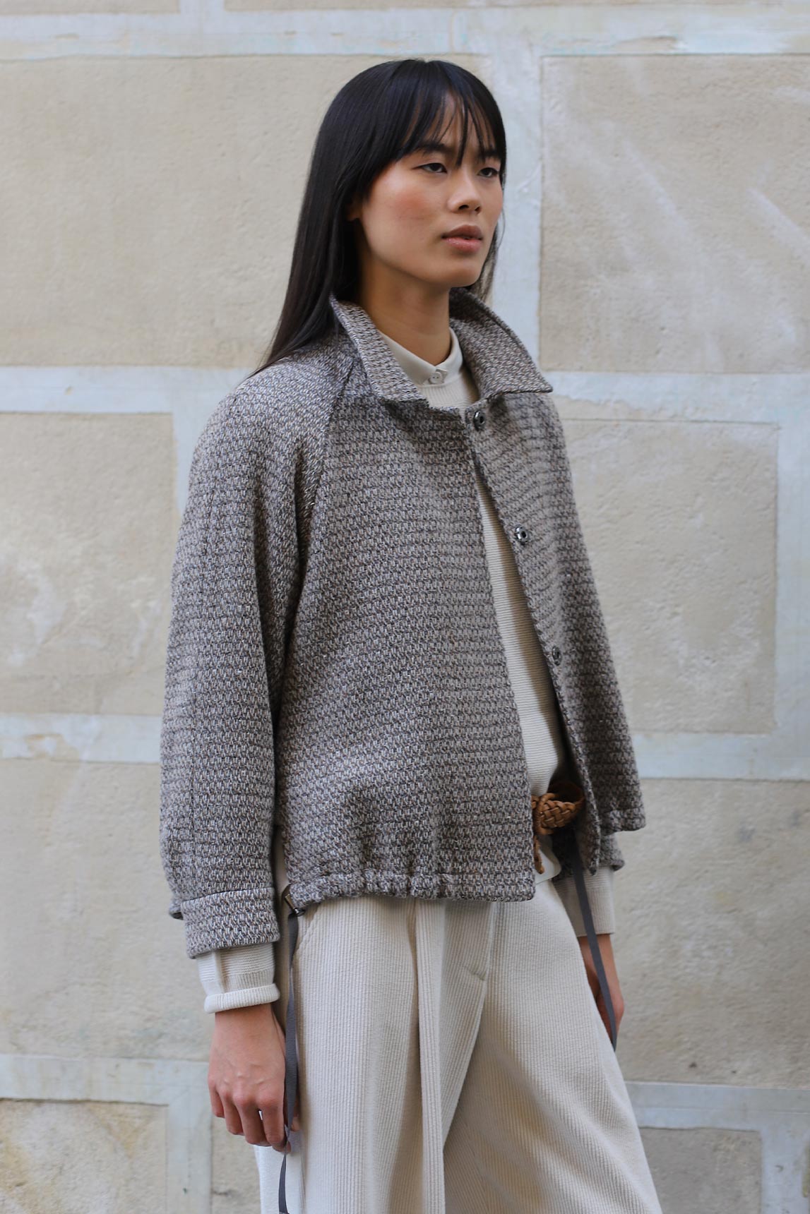 La cazadora Novara es la prenda ligera que completa cualquier look con un aire sofisticado y práctico. Su tejido jacquard bicolor aporta textura y profundidad al color, mientras la silueta recta con manga raglán favorece y permite superponer cómodamente camisas o punto fino. El cuello camisero y el cierre de botones rematan un diseño limpio y versátil, ideal para entretiempo con vaqueros, sastre claro o faldas midi.