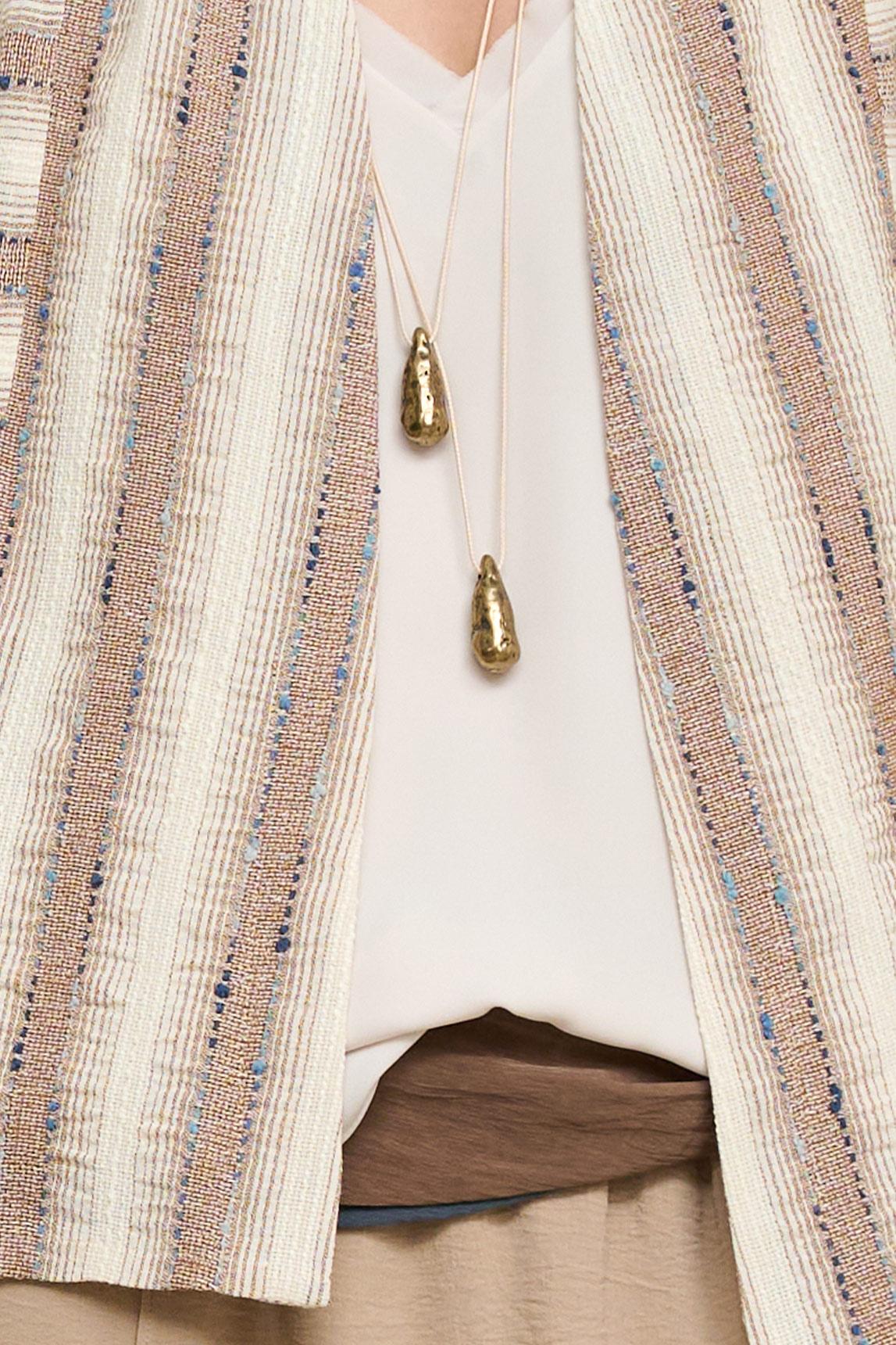 El collar Luneria en latón presenta un diseño largo y delicado compuesto por doble cordón fino gris que sostiene pequeños colgantes en caída vertical. Su silueta estilizada aporta ligereza y un movimiento sutil que acompaña el gesto con naturalidad. En esta versión, los detalles metálicos en latón refuerzan una estética contemporánea y luminosa. El brillo suave del acabado plateado aporta frescura y combina especialmente bien con estilismos en negro, gris, azul marino o conjuntos monocromáticos. Su diseño minimalista lo convierte en una pieza versátil, perfecta para llevar sobre blusas fluidas, vestidos lisos o prendas de líneas depuradas, aportando un punto elegante sin resultar excesivo. Nos esforzamos por mostrar los colores de la forma más fiel posible, pero pueden variar ligeramente respecto a la realidad.