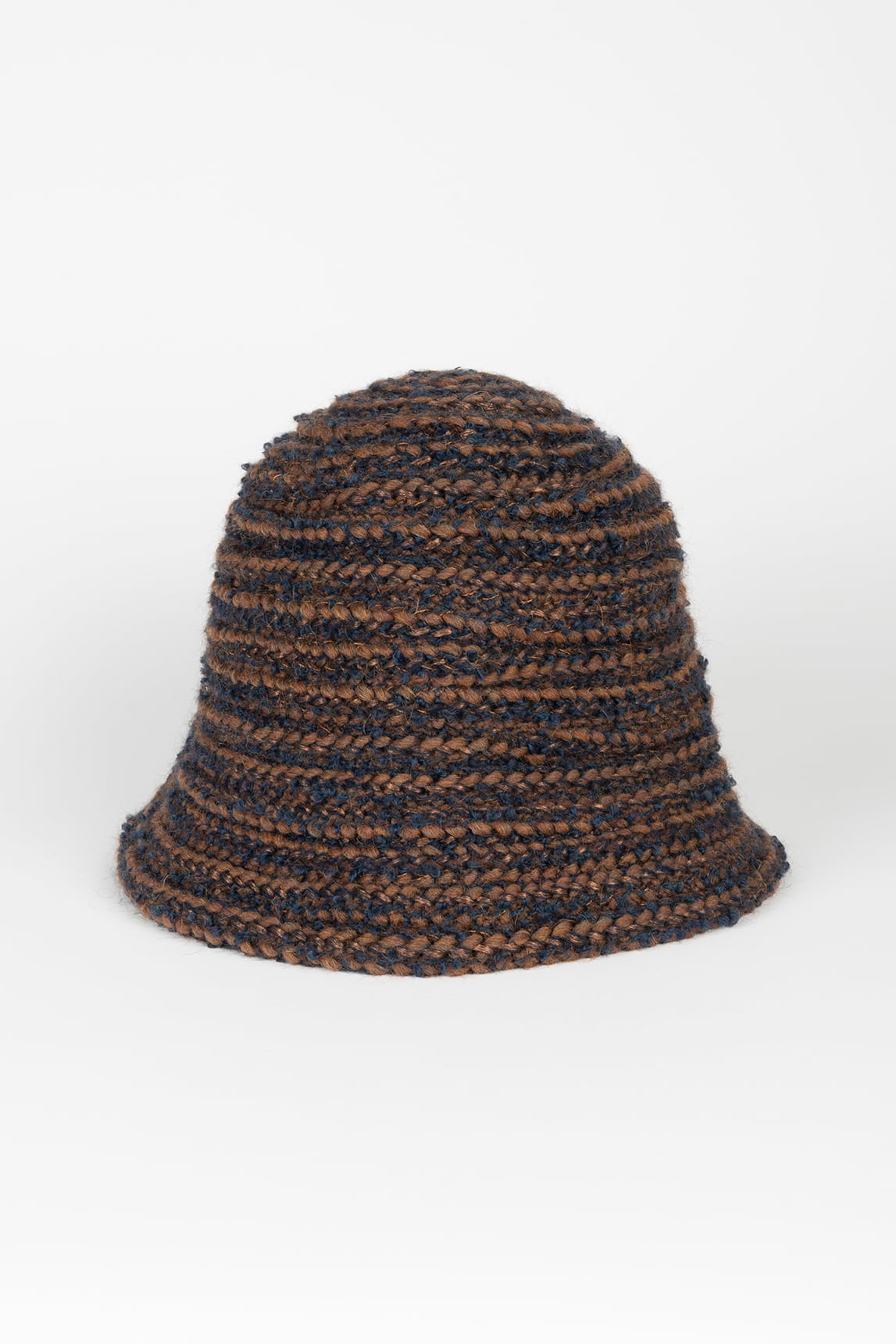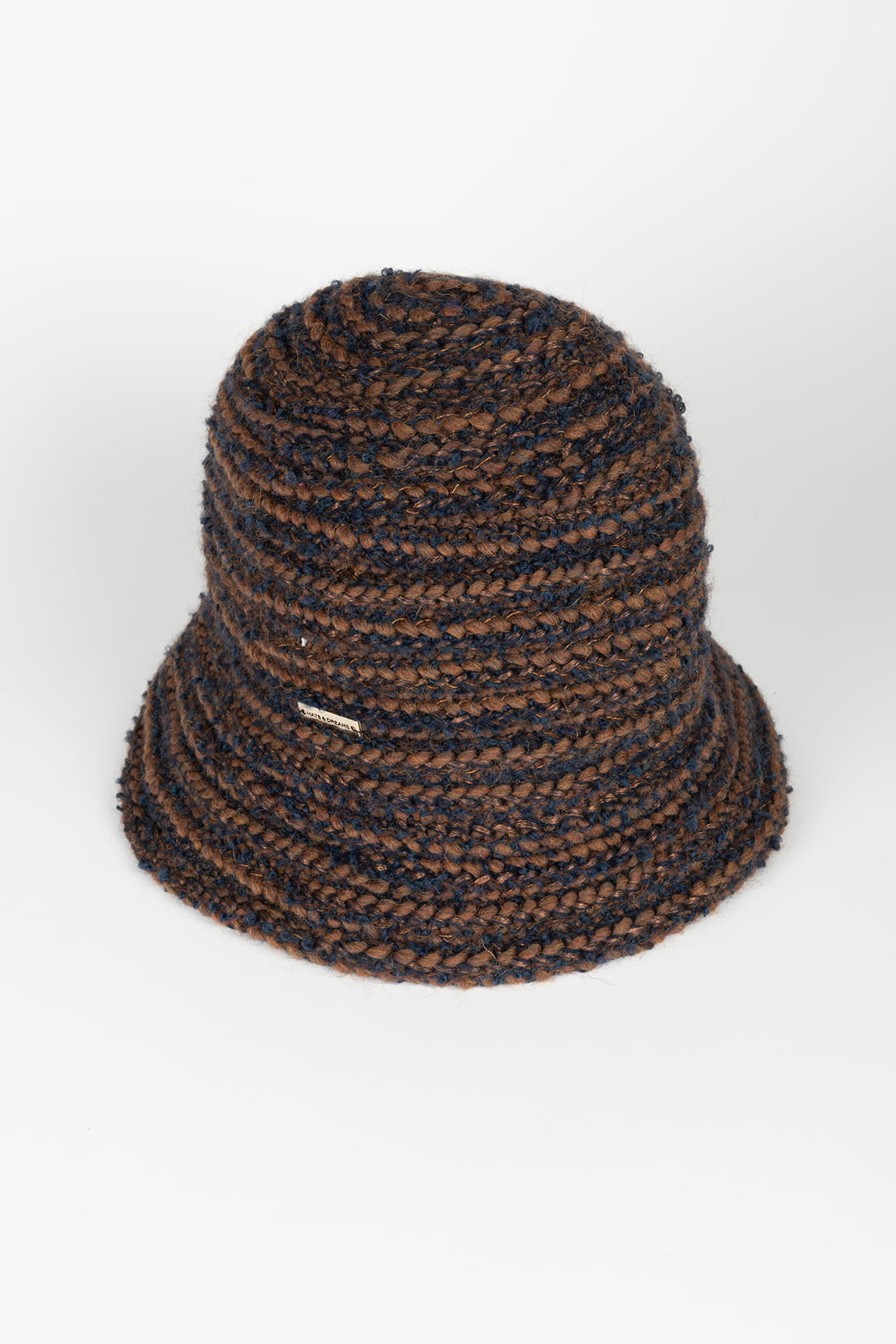 A hat with personality thanks to its combination of brown and blue threads. The bouclé weave gives it a rustic yet modern aesthetic, ideal for those looking to stand out with a unique accessory.